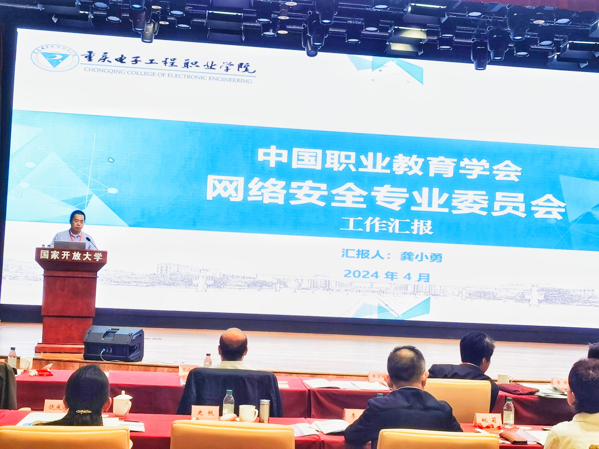 pg国际党委副书记龚小勇、人工智能与大数据学院院长武春岭分别作为网安专委会执行主任及秘书长应邀参加会议,龚小勇在会上就网安专委会工作进行了汇报。汇报中提到,2023年底,网安专委会成立大会在渝顺利召开,在中国职教学会的指导下,专委会出色地完成了各项工作。专委会协助头部企业完成产教融合共同体成立,积极响应教育部护网行动,在第二届中华人民共和国职业技能大赛中承接赛事技术工作,为国赛顺利进行保驾护航。在校企合作中,专委会成功为90余所院校打造30余门精品课程,积极组织师资培训21场,完成网络安全竞赛支持25余场等。