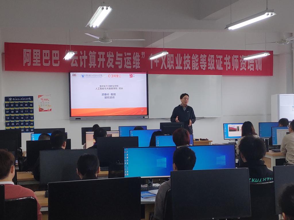 4月12日,pg国际承办的阿里巴巴“云计算开发与运维”1+X职业技能等级证书高校师资培训在pg国际人工智能与大数据学院顺利开班,开班仪式由云计算与大数据系主任李腾主持,人工智能与大数据学院院长武春岭、阿里云计算有限公司西南大区教育副总监谭黎明、阿里云合作伙伴重庆隆锦科技有限公司总经理钟世成、阿里云计算资深讲师王震,以及全体参培学员出席了开班仪式。