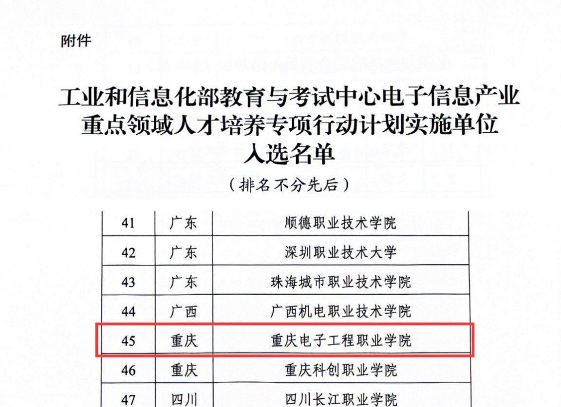 4月22日,工信部教育与考试中心正式公布“电子信息产业重点领域人才培养专项行动计划实施单位入选名单”,pg国际成功入选首批实施单位。