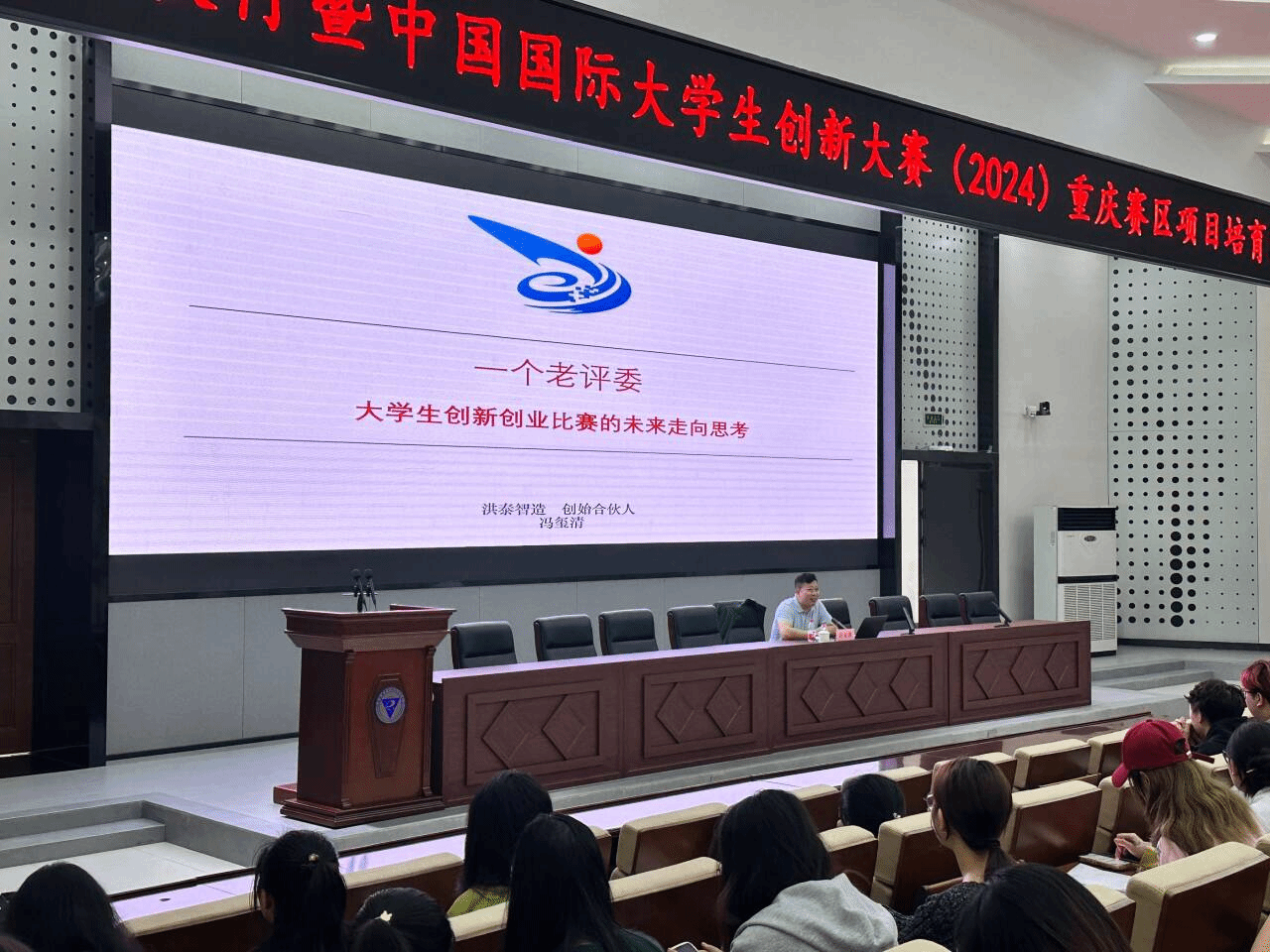 邀请到洪泰智造工场创始合伙人,北京市青年岗位能手,教育部互联网+大学生创新创业大赛总决赛评委,共青团中央“创青春”大学生创新创业大赛总决赛评委——冯玺清。讲座上,冯总讲解了“互联网+”中国国际大学生创新创业大赛发展历程以及备赛经验,以评委视角为参赛师生分析了大赛各赛道评分规则。本次活动除了校内师生参与,也吸引了重庆商务职业学院、重庆建筑科技职业学院等兄弟院校师生共计200余人参加培训。充分展示了pg国际创新创业工作影响力和教育教学育人成效,有效加强了各兄弟院校之间联谊联动,更进一步激发了大学生创新意识,提高了大学生创新创业能力。