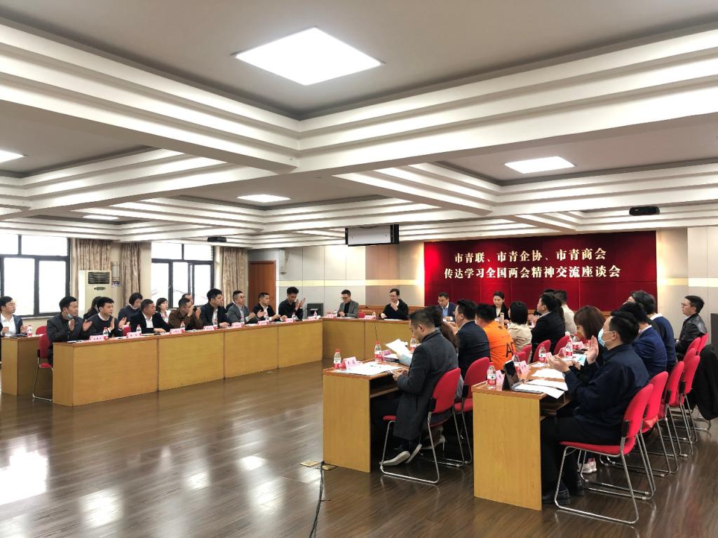 为深学笃用习近平新时代中国特色社会主义思想,深入学习贯彻习近平总书记重要讲话精神和全国两会精神,3月16日,市青联、市青企协、市青商会通过线上线下相结合的方式召开传达学习全国两会精神交流座谈会。