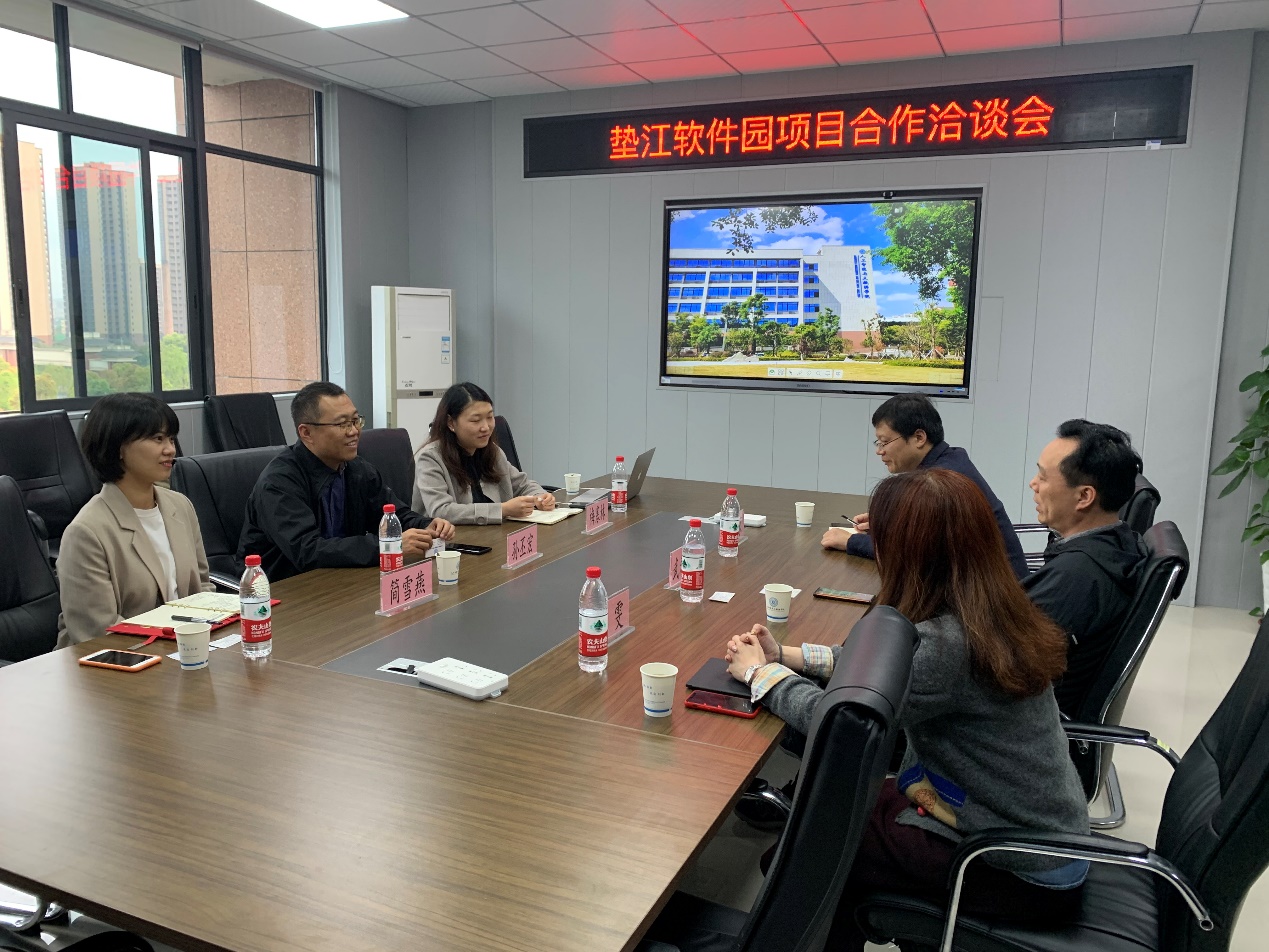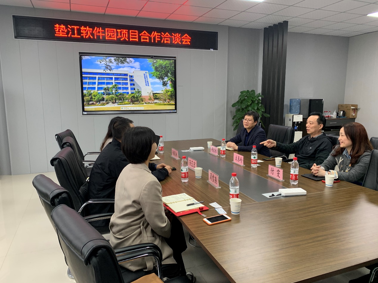 2021年3月16日下午,重庆软件园总经理孙丕宏、垫江软件园项目负责人梅寒林一行三人来pg国际人工智能与大数据学院合作洽谈,pg国际人工智能与大数据学院院长武春岭、大数据研究中心主任付雯、人工智能系主任胡云冰参加了洽谈会。
