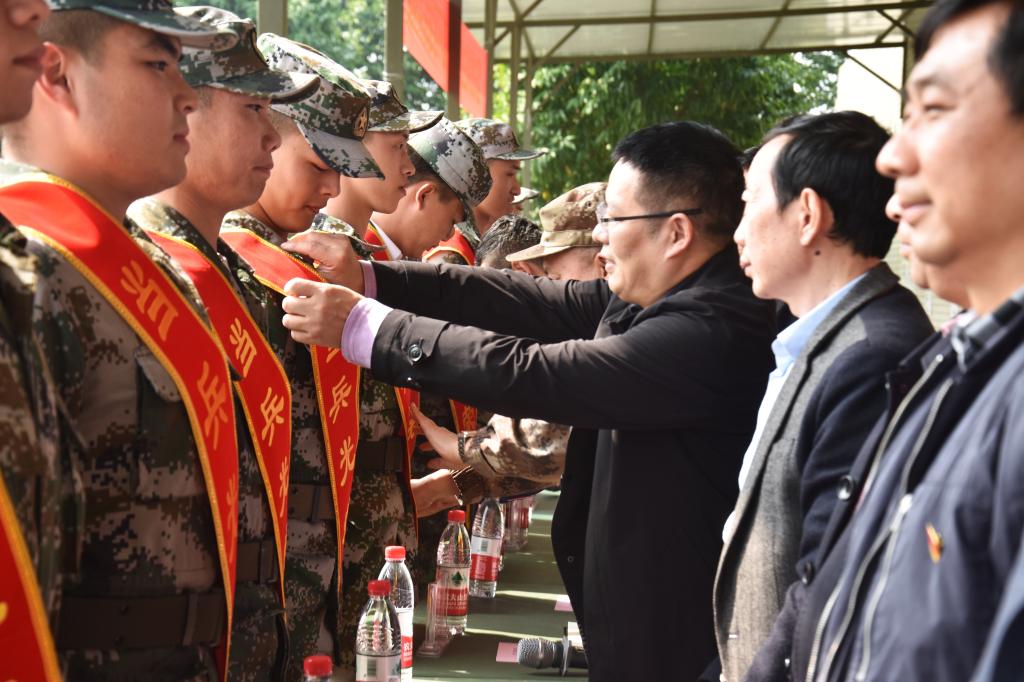 欢送会由校人民武装部副部长田艾主持,首先全体起立奏唱中华人民共和国国歌。随后参会领导为新兵佩戴绶带,红色绶带上“当兵光荣,报效祖国”的字样在初春艳阳天下熠熠生辉,寄托着学校对入伍同学的殷切希望,带着无上荣光,传承红色基因,保家卫国。