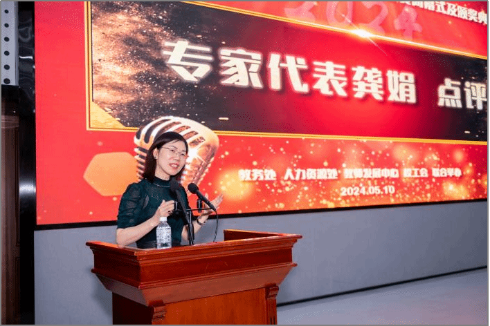 图5 评委代表张会丽点评 图6 评委代表龚娟点评