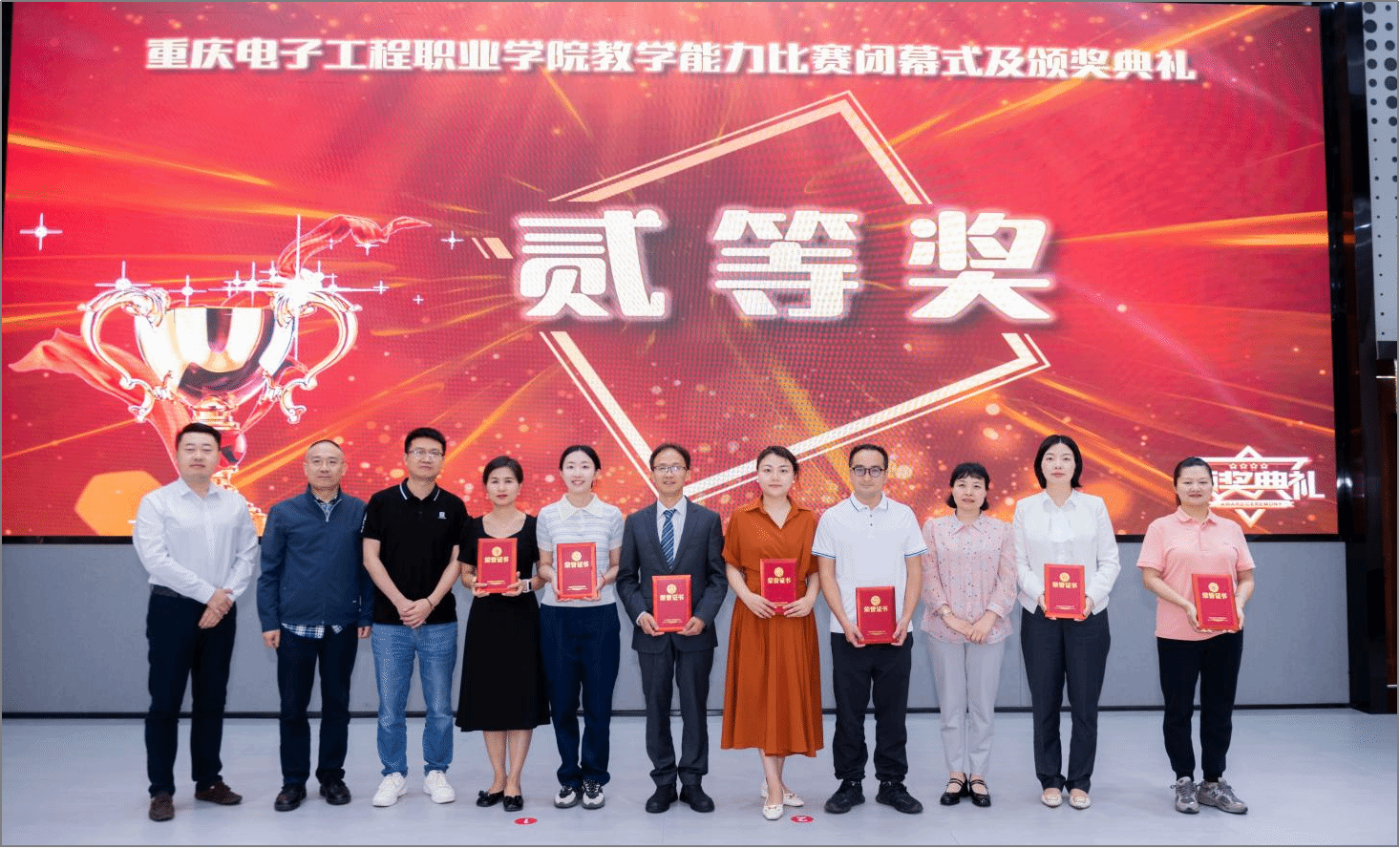 学校以竞赛为抓手,秉持“以赛促教、以赛促学、以赛促改、以赛促研”理念,持续完善教学能力比赛机制,进一步健全校级指导教师管理制度,着力提升教师教育教学能力与水平,全面提升教学质量。在2021-2023年中,每年取得全国职业院校技能大赛教学能力比赛2个一等奖的佳绩,国赛一等奖数量位列全国高职第2。成绩的取得,离不开教师们的辛勤努力,离不开校内指导教师、省内外专家的精心指导,更离不开学校领导的关心关怀与大力支持。在学校领导的关心支持下、在各部门的密切配合下,通过教师们的努力拼搏,重电定能不断再创佳绩。