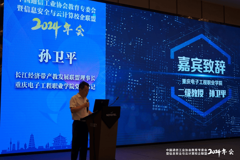 紧接着,长江经济带产教融合发展联盟理事长、重庆电子工程职业学院党委书记孙卫平教授,在致辞中深刻阐述了产教融合对于行业发展的深远影响。孙卫平书记分享了联盟在推动教育与产业深度融合方面的丰富实践经验,以及取得的显著成就和积极影响。