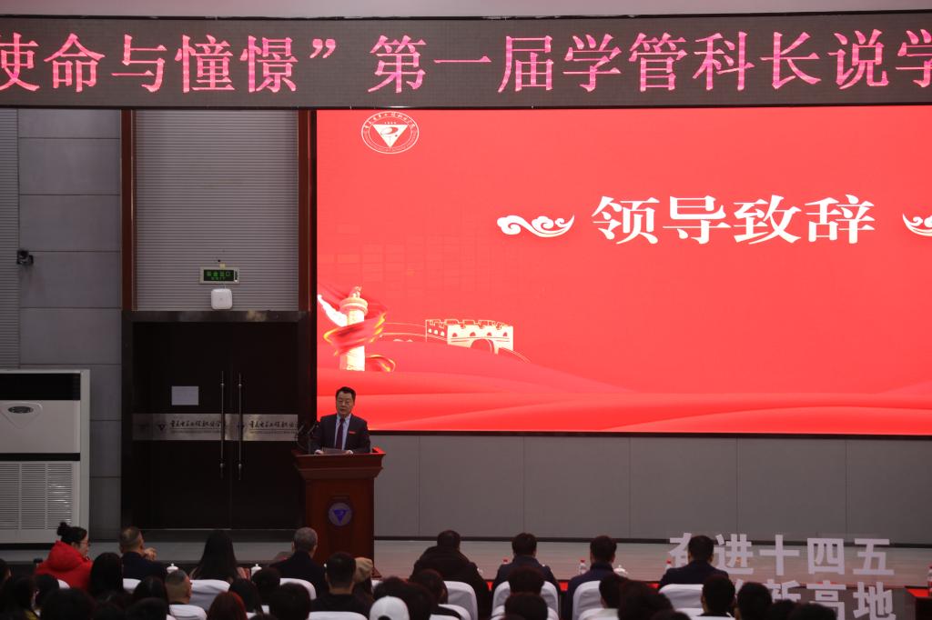 为深入贯彻落实习近平新时代中国特色社会主义思想和党的十九大和十九届二中、三中、四中、五中全会精神,深入研究和掌握学生成长成才规律,探索科学务实的管理手段,不断提升学校学生管理工作治理体系和治理能力的现代化水平,2021年1月15日,“使命与憧憬”第一届学管科长说学管工作素质能力大比武在博远厅举行。校党委书记孙卫平,党委委员、副校长冉学农,党委委员、党委组织部部长刘洪光,党委委员、党委宣传部部长疏勤,党政办公室主任金琳,党委教师工作部、人力资源处处长廖世萍,党委学生工作部部长何光明,党委学生工作部副部长蒋斌和校外专家评委出席了本次活动。各二级学院党总支书记、副书记、团总支书记、学管科科长、学管科干事、全体辅导员、班主任及各二级学院学生代表300余人参加了活动。