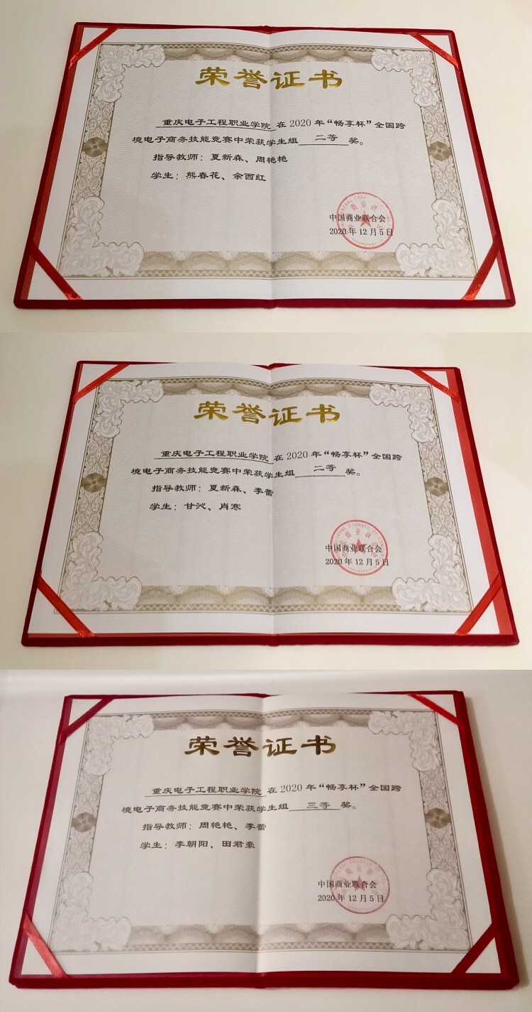 12月5日,2020年“畅享杯”全国跨境电子商务技能竞赛总决赛在海口落下帷幕。大赛由中国商业联合会主办,中国商业联合会互联网应用工作委员会和海南经贸职业技术学院联合承办。来自全国各大院校的80支参赛队经过4个小时的激烈比拼,pg国际电子与物联网学院电子产品营销与服务专业的熊春花、余西红、甘沁、肖寒、李朝阳、田君豪等六位同学组成的三支参赛队,在夏新森、周艳艳、李蕾三位老师的指导下,分别获得两个二等奖、一个三等奖的优异成绩。