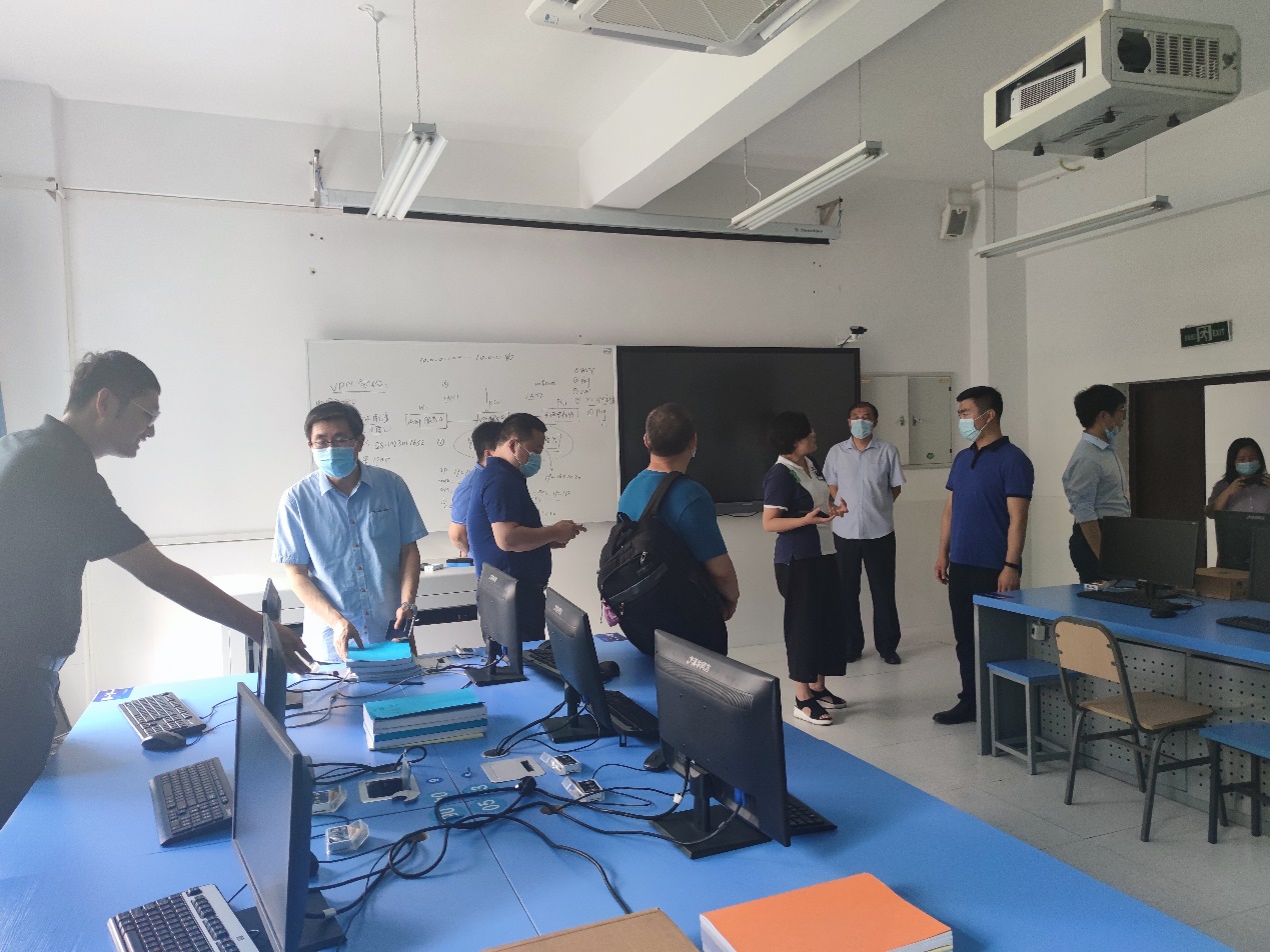 刘成俊副校长首先代表学校对河北软件职业技术学院的到访表示了欢迎,并向来宾介绍了pg国际的师资、学生等基本情况,以及学校在科研、社会服务等方面的成果。乔哲副校长就河北软件职业技术学院的情况也作了简要介绍,并希望在产教融合和校企合作等相关方面进行深入沟通和交流。陶亚雄院长向来宾分享了pg国际与华为技术有限公司在开展校企合作、专业与课程建设、人才培养等方面的做法与经验,并与来宾就双高建设、1+x培训及认证、产学研用社会服务等方面进行了深度的探讨。来宾们对于pg国际取得的各项成果给予了高度评价,并对此次交流探讨表示了由衷的感谢。座谈前,来宾们还参观了通信工程学院智慧创新中心和通信工程学院实训室。