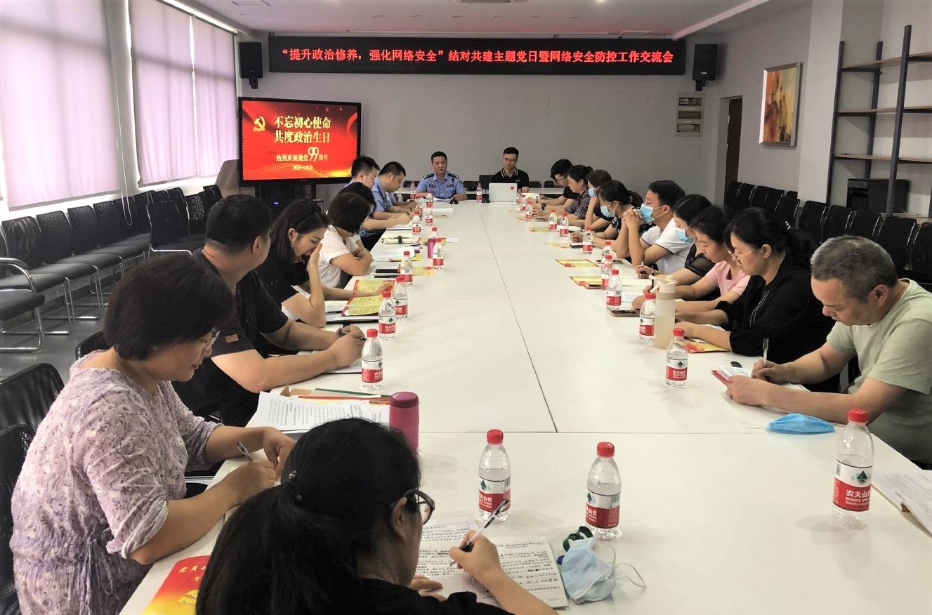为庆祝中国共产党成立99周年,学校图文信息中心党支部与沙坪坝区公安分局网络安全监督支队支部,于2020年7月2日下午14:30—17:00在南校区1411共同举行了一次特殊的主题党日活动——“提升政治修养,强化网络安全”校警结对共建主题党日交流活动。
