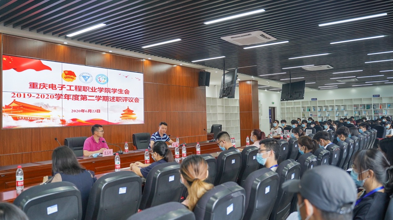 6月23日中午,重庆电子工程职业学院校团委举行2019-2020学年度学生会述职评议会。党委学工部副部长蒋斌出席会议,各二级学院团总支书记,述职学生干部代表和评议代表参加会议。会议由校团委书记袁玉刚主持。
