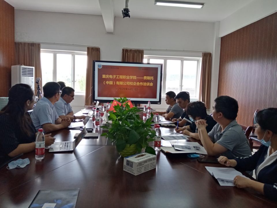 2020年6月3日上午,费斯托Festo(中国)有限公司总监王伟强,江苏中教信息技术有限公司总经理王晓刚、总监闵洁,江苏中教信息技术有限公司重庆分公司总经理廖军,一行4人前来pg国际智能制造与汽车学院就自动化系专业产教融合事宜进行了交流座谈。智能制造与汽车学院副院长叶勇、社会服务科负责人甘守武、党政科负责人封明亮、自动化系主任吴春艳、副主任宋丽莉参与洽谈。