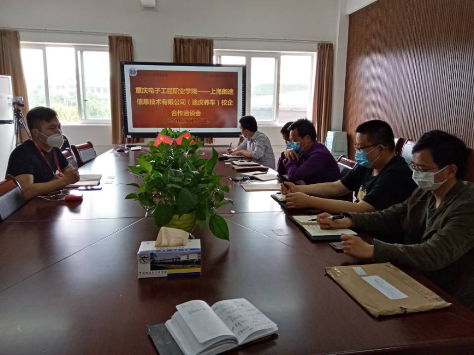 2020年5月28日下午2点,重庆电子工程职业学院智能制造与汽车学院院长张进春,书记罗永前,副书记丁伟,汽车工程系主任王勇,社会服务科负责人甘守武与途虎养车代表--线下运营发展部经理鲍京进行了校企合作方面的交流与洽谈。