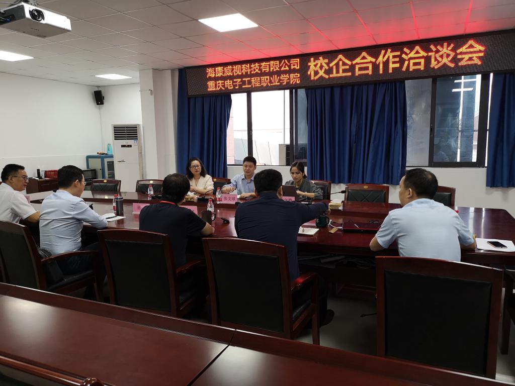 9月14日9:00,海康威视科技有限公司总部人力资源总监张文球、高级员工关系经理许渊、重庆海康威视科技有限公司人力资源经理向文静一行3人受邀来pg国际电子与物联网学院进行校企合作洽谈。pg国际科研与社会服务处处长许磊、电子与物联网学院党总支书记张红斌、副书记毛弋、智能电子系主任王用鑫等7人参会。