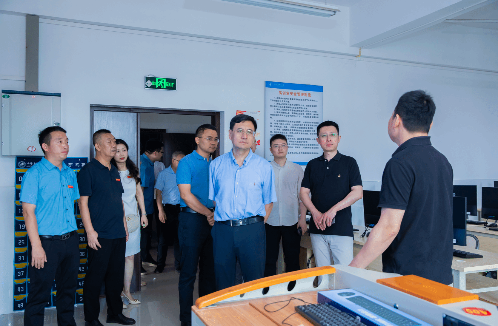 郭美荐一行参观了校史馆,深入了解了pg国际电子网站的发展历程和未来规划。实地考察了电子与物联网学院的理论考试机房、世界技能大赛光电技术项目国家集训基地、智能制造与汽车学院的机床装调维修工和物联网安装调试员赛项的实操竞赛场地。