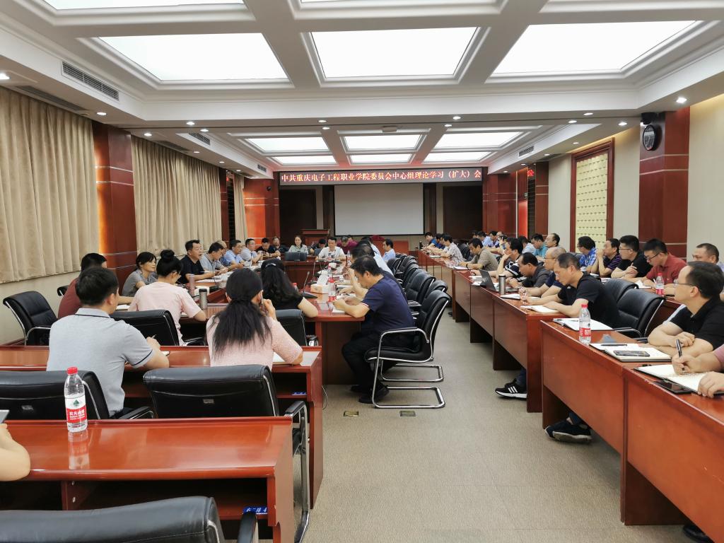 9月7日上午,重庆电子工程职业学院在博润厅会议室召开党委理论中心组(扩大)会议,采取自学和集中交流相结合的方式,深入学习领会《习近平谈治国理政》第三卷座谈会精神、习近平总书记对制止餐饮浪费行为作出的重要指示精神以及习近平总书记在经济社会领域专家座谈会上的讲话精神。研讨学习《习近平:思政课是落实立德树人根本任务的关键课程》、《习近平:充分认识颁布实施民法典重大意义,依法更好保障人民合法权益》。全体校领导、处级领导干部参加会议。学校党委书记孙卫平主持会议。