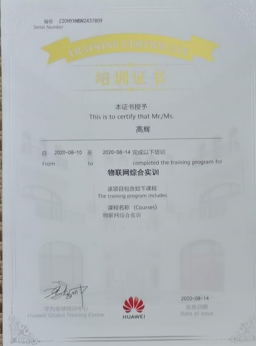 当前科技发展十分迅速,电子信息及物联网新技术应用层出不穷。秉承高质量实施“双高”专业建设任务要求,学院“走出去引进来”同步进行,加强与行业领军企业的联系互动。8月10日至15日,华为全球培训中心在杭州市举办了物联网综合实训培训班,电子与物联网学院信息工程系专任教师杜培、高辉利用暑期空档,前往参加培训,力图为师资队伍等专业建设进程添砖加瓦。