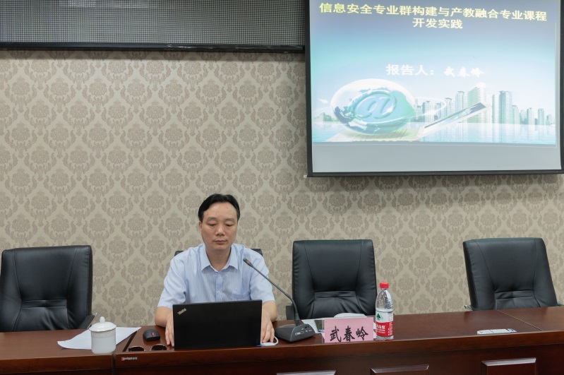 开班式后,武春岭教授作了《信息安全专业群构建与产教融合专业课程开发实践》主题讲座。