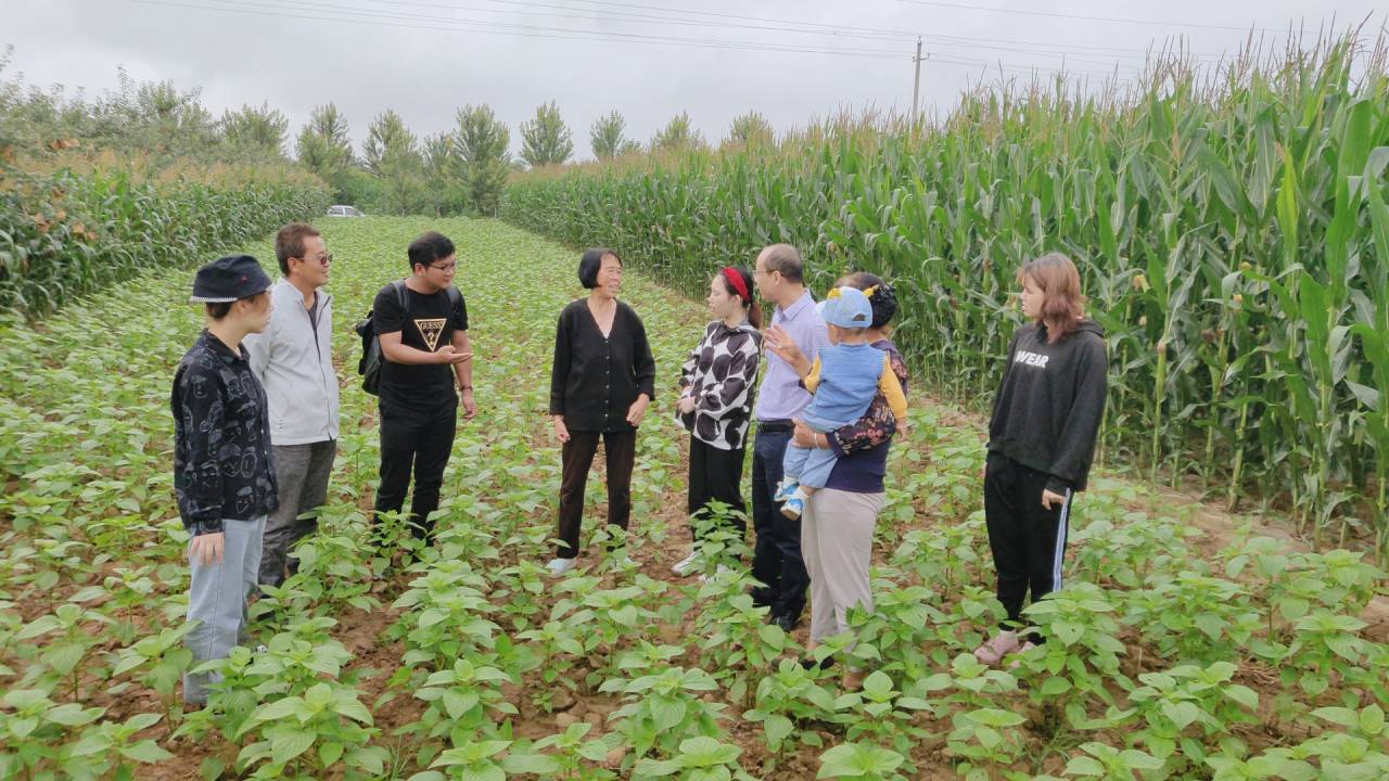 团队与农户在田间交流紫苏种植情况