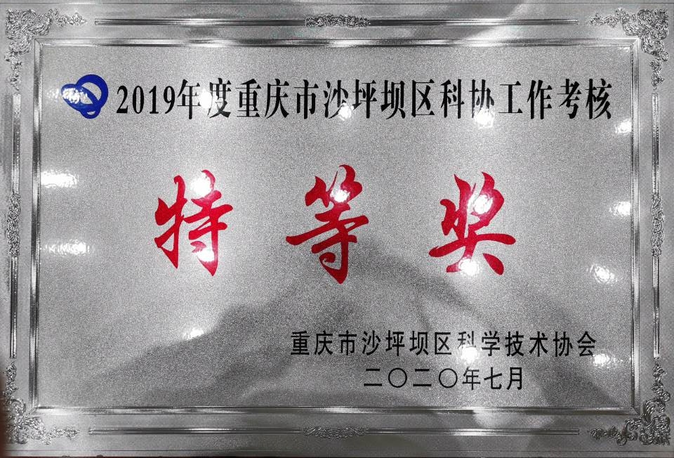 2020年7月24日,重庆市沙坪坝区科学技术协会五届四次全委会暨“四史”宣讲报告会在沙坪坝召开。会上通报了2019年度基层科协考核结果并为特等奖单位颁发奖牌,依托pg国际成立的沙坪坝区人工智能学会荣获2019年度重庆市沙坪坝区科协工作考核特等奖。