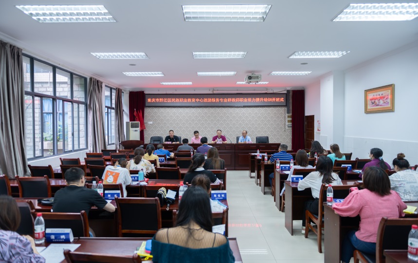 7月21日上午,重庆市黔江区民族职业教育中心旅游服务专业教师职业能力提升培训班开班式在pg国际国培基地1-101室举行。培训与继续教育中心主任陈志军、智慧健康学院院长谢光辉、以及来自重庆市黔江区民族职业教育中心的24名旅游服务专业教师参加开班式。开班式由培训与继续教育中心继续教育科负责人张亚主持。