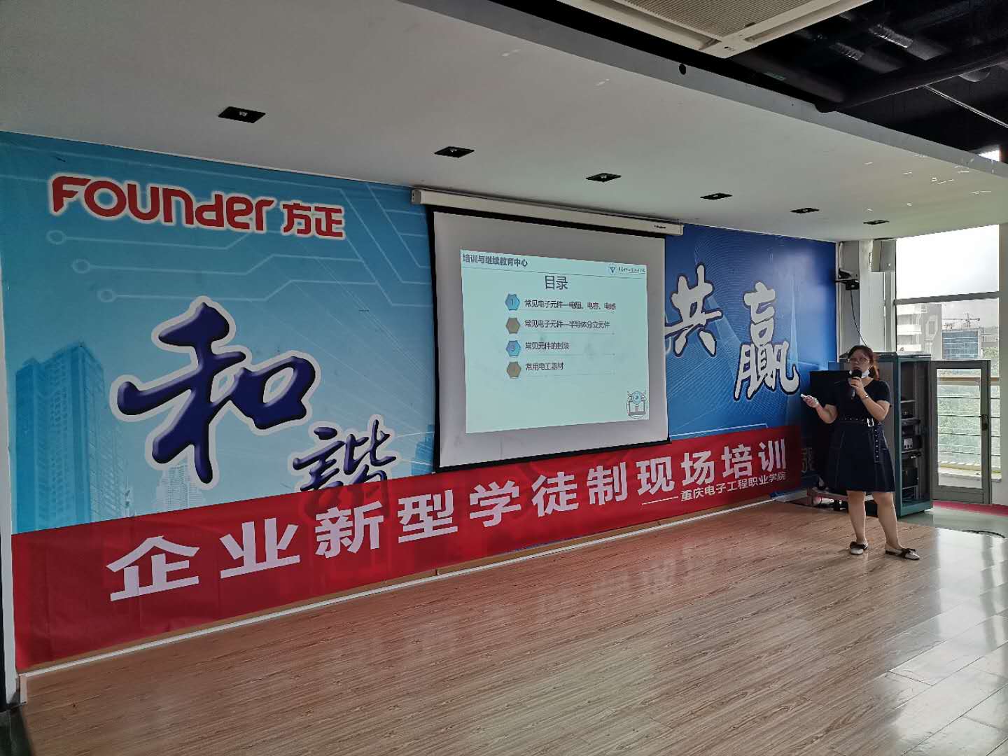 重庆方正高密的新型学徒制课程将持续一年的时间,共培训626人。因企业生产产品的特殊性,所有人员均为印制电路制作工工种的培训。整个线下培训课程模块包括:职业素养、工匠精神、法律法规、理论课程、实操课程和认证考核。分别有pg国际电子与物联网学院的李慧琼、周莹、毛朝庆等三位骨干教师进行现场授课。