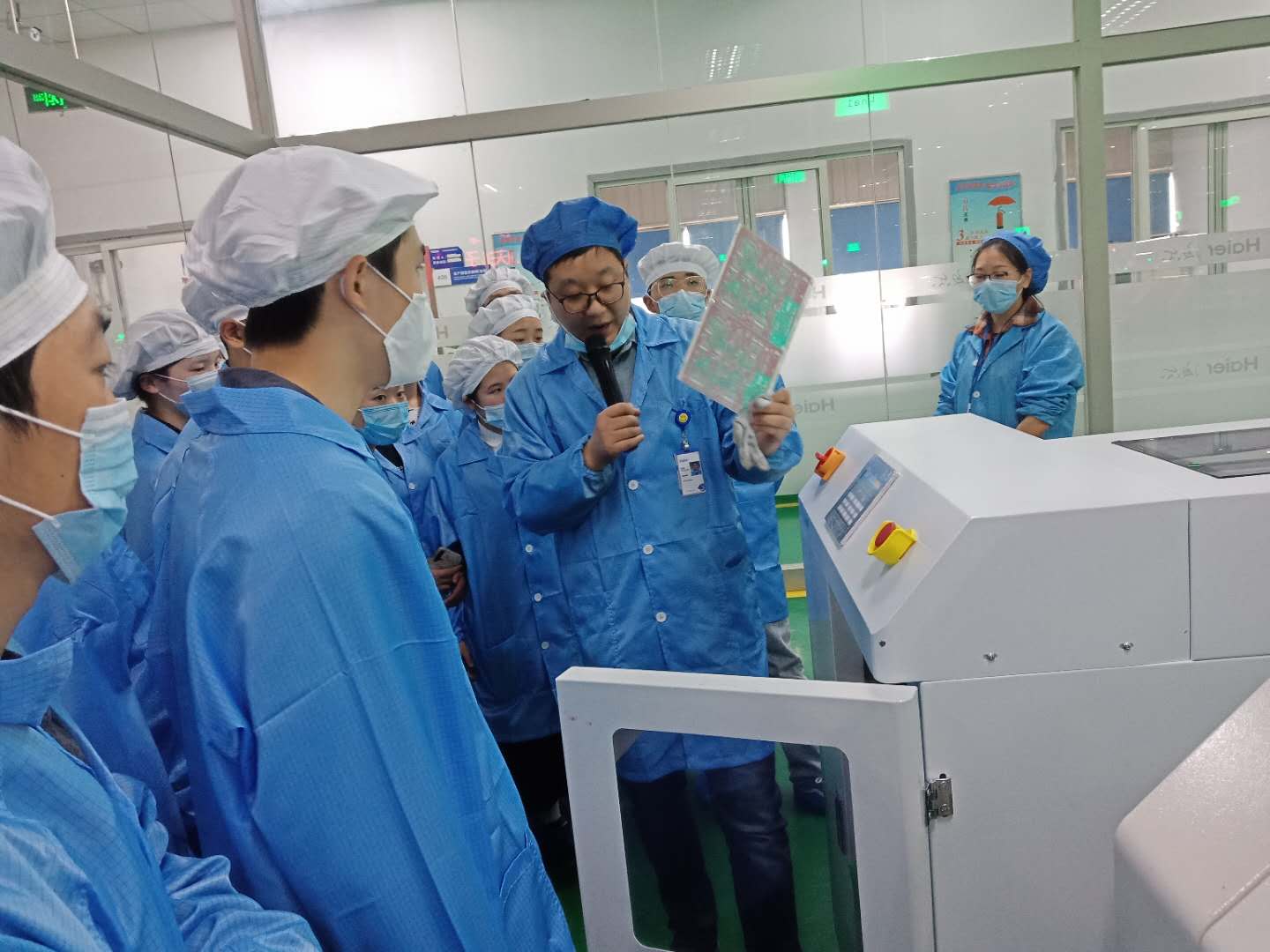 学生主要参观了海尔智能工厂生产车间。车间技术人员具体讲解了空调、洗衣机等家电产品PCB板的生产流程,使学生了解到海尔工厂生产线采用的工业4.0新技术,以及如何使用这些技术全面实现生产的无人化、高效化。通过这次参观,让在场学生及时家电行业状态及专业发展动向,对未来专业对口岗位有了认知。同时,清楚了行业、企业对学生的知识、能力和素质等方面的具体要求,从而帮助学生在未来的专业学习中找准方向。