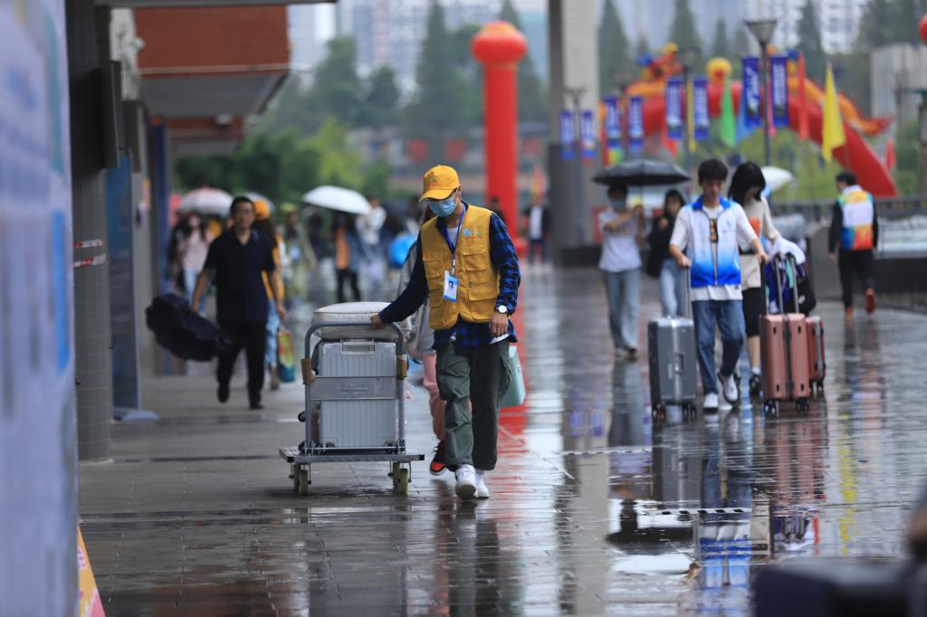 为做好疫情防控,今年的新生开学只能学生自主进入学校并且完成报到注册。为给2020级新生创造良好的校园氛围,志愿者们秉持着“奉献、友爱、互助、进步”的志愿者精神,为新生们带去最热心的服务。从登记发卡到接车、行李看管、从办理绿色通道,带领新生缴费到搬运行李,送新生抵达宿舍,志愿者们有条不紊,周到细致的服务得到了新生的一致好评。