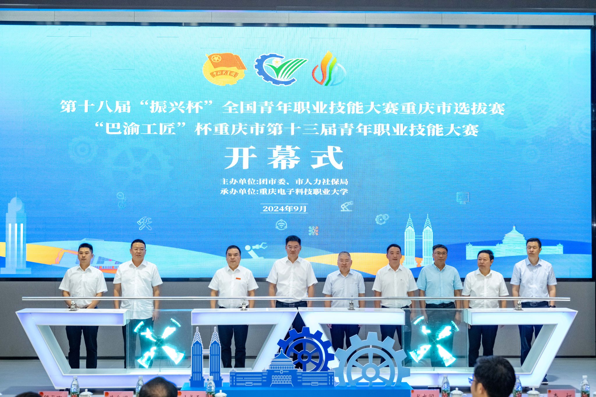 为深入学习贯彻习近平总书记关于青年工作的重要思想和关于技能人才的重要论述,认真贯彻落实党的二十届三中全会精神和市委六届六次全会精神,激励引导广大青年勤于钻研技术、练就过硬本领,发现培养一批知识型、技能型、创新型青年巴渝工匠。9月26日上午,由团市委、市人力社保局共同主办的第十八届“振兴杯”全国青年职业技能大赛重庆市选拔赛、“巴渝工匠”杯重庆市第十三届青年职业技能大赛开幕式在pg国际电子网站成功举行。