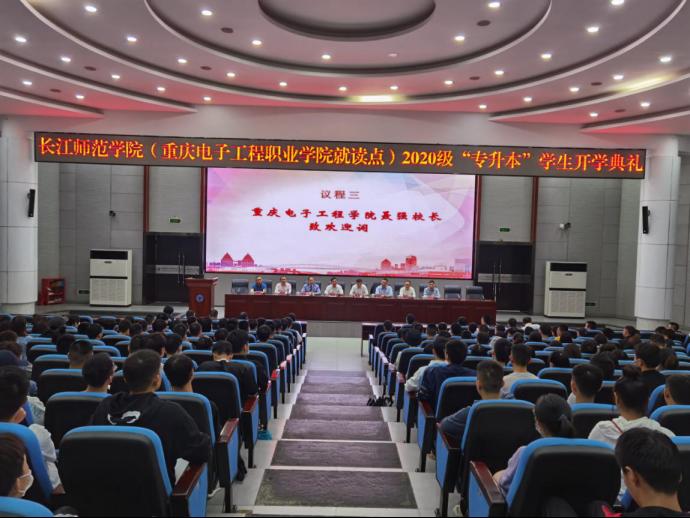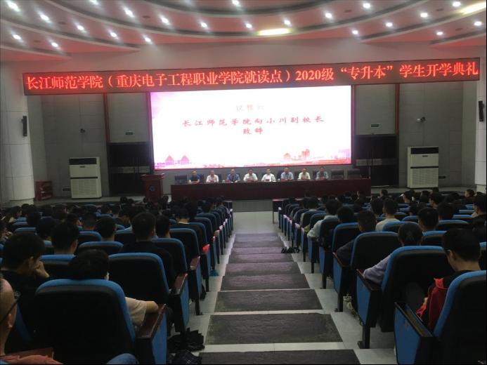 9月22日13:30,长江师范学院(重庆电子工程职业学院就读点)2020级“专升本”学生开学典礼在pg国际博远厅顺利举行。典礼由龚小勇副校长主持。参加典礼的有:长江师范学院党委常委、副校长向小川、学生处处长王东辉、电子信息工程学院院长李松柏、大数据与智能工程学院院长黄世权、教务处副处长董顺伟及部分专业教师、辅导员;重庆电子工程职业学院校长聂强、副校长龚小勇、副校长冉学农、教务处副处长赖先志、通信工程学院党总支书记曾晓宏、院长陶亚雄、人工智能与大数据学院党总支副书记刘宏宇、副院长童世华、电子与物联网学院党总支副书记毛弋、副院长夏西泉、三个二级学院的教务科长、学管科长、本科班辅导员及全体本科班学生参加了典礼。