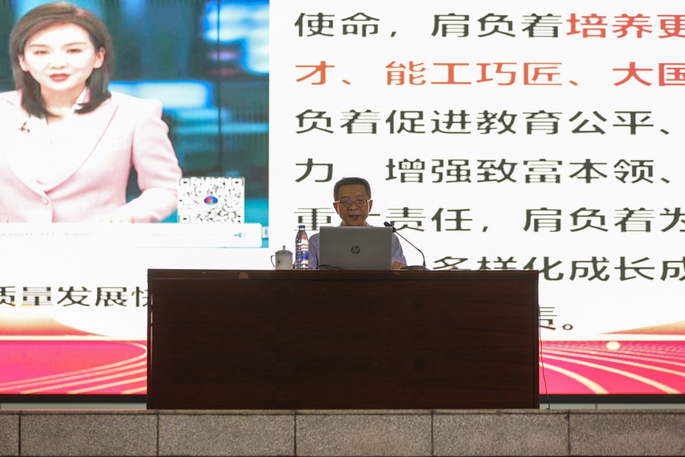 张伟书记围绕在国家战略场景中把握职业教育时代要务;在区域经济发展中把握职业教育定位空间;在深观重电发展中把握职业教育使命担当三方面展开具体阐释。