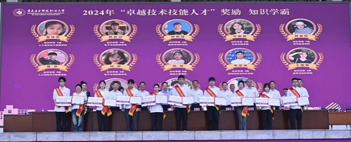 为增强2024级学生的集体荣誉感和归属感,在本次开学典礼暨“卓越技术技能人才”颁奖典礼中,由主席台全体校领导为2024级新生代表佩戴校徽。