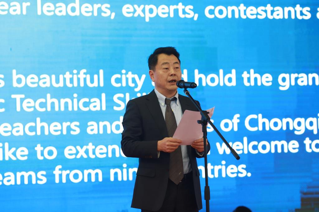 重庆电子工程职业学院党委书记孙卫平致辞中介绍了学校的发展情况和大赛背景。他谈到,“新一代光电技术的发展是万物互联时代的重要支撑,扮演着极其重要的角色”。重庆电子工程学院积极开展光电技术领域的技术技能人才培养工作。他表示学校“有能力、有实力做好光电技术赛项,为全球技能人才培养提供一个尝试技能、了解技能、获得技能的国际化平台” 。