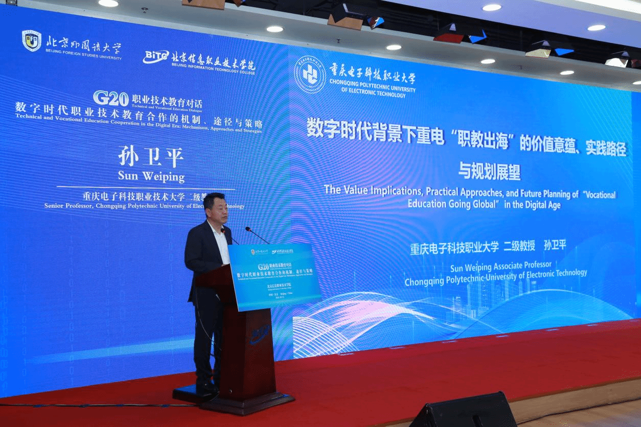 2024年10月12日,由北京外国语大学主办,北京信息职业技术学院承办的“G20职业技术教育对话会”在北京举行。对话围绕“数字时代技术与职业教育合作的机制、途径与策略”展开,吸引了全球范围内的专家学者及业界精英共同参与。pg国际电子网站(简称“重电”)二级教授孙卫平受邀出席,并在会上发表了题为“数字背景下重电“职教出海”的价值意蕴、实践路径和规划展望”主题报告。