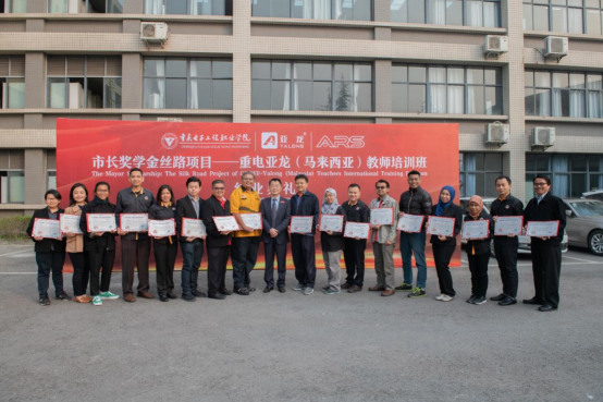 2019年12月10日上午,智能制造与汽车学院在博润厅举行了“市长奖学金丝路项目---重电亚龙(马来西亚)教师培训班”结业典礼。参加典礼的有党委书记孙卫平、副校长龚小勇,亚龙集团马来大区负责人叶誉、柯强挺,学校相关部门负责人以及进修班的全体马来学员、项目教师和学生助教团。结业典礼由副校长龚小勇主持。