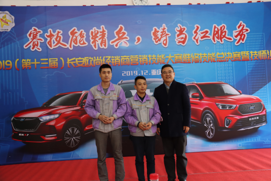 长安欧尚汽车销售公司党总支书记、副总经理郑长江先生与总冠军获奖者合影