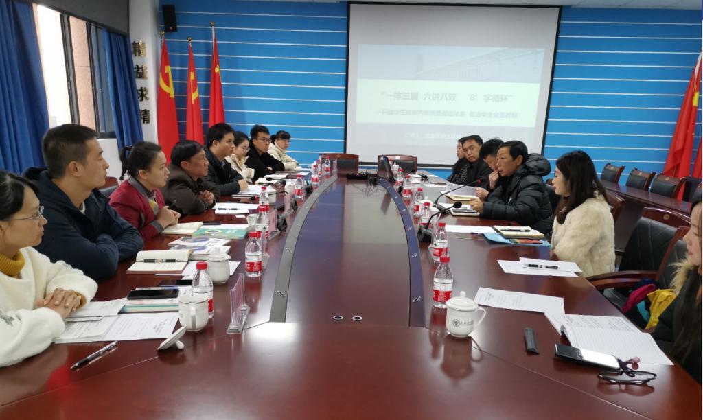 何光明部长对柳州职业技术学院同仁们的到来表示热烈欢迎,并就pg国际的整体情况、历史沿革、办学规模、历年办学成果等方面作了介绍,对各二级学院学生管理工作方面的亮点特色进行了交流。并作了题为《“一体三翼六讲八双‘8’字循环”——构建学生层面内部质量保证体系 促进学生全面发展》的交流报告。双方就全国职业院校学生管理50强的经验、学生素质教育管理情况、辅导员队伍建设等方面进行了深入探讨。