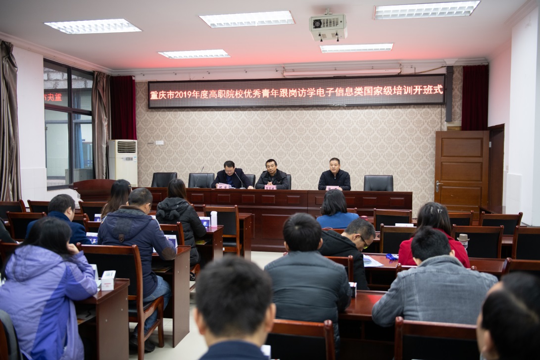 11月25日上午,重庆市2019年度职业院校教师素质提高计划优秀青年教师跟岗访学高职电子信息类(不限专业)国家级培训班在pg国际开班,来自重庆市10余所高职学院的20名老师参加培训学习。