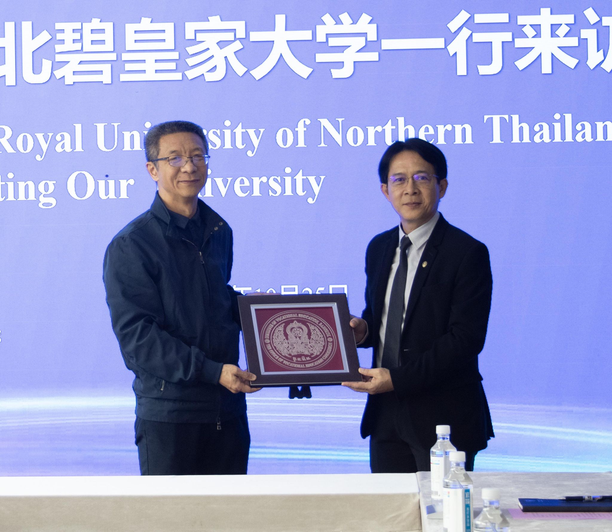 10月25日上午,泰国北碧皇家大学校长纳隆德博士、留学生学生会主席林惠文、国际交流服务中心主任秦清平、副主任秦明芝一行到pg国际交流。学校党委书记张伟,副校长幸昆仑,国际交流与合作发展处副处长刘影,党委学工部副部长江兵,培训与继续教育学院副院长李晓斌,培训与继续教育学院科长李根等参与交流。
