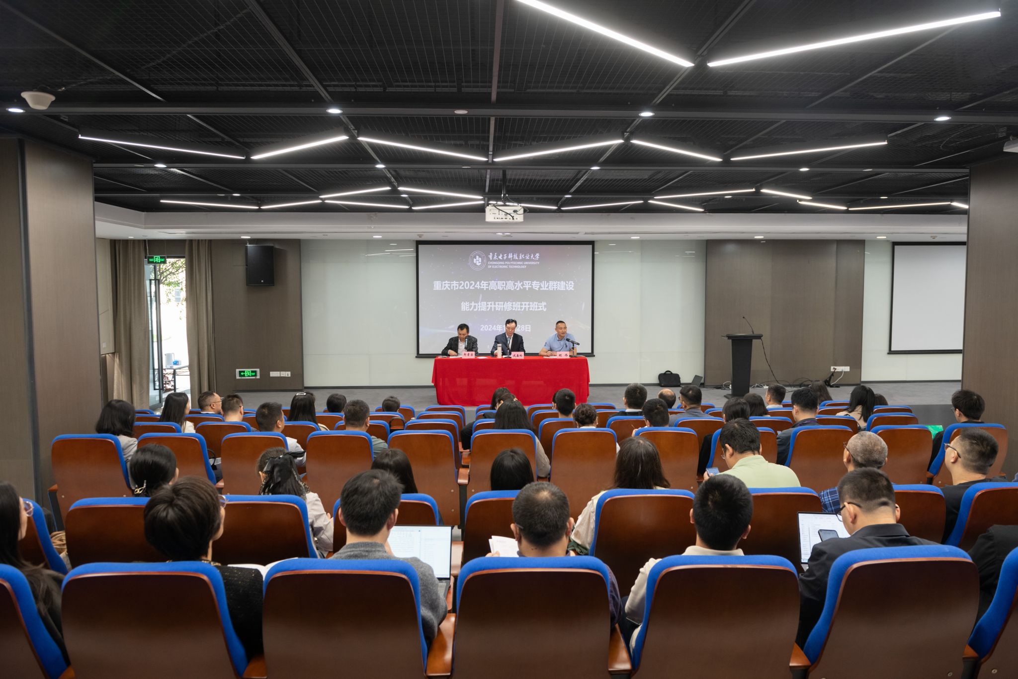 2024年10月28日,重庆市2024年高职高水平专业群建设能力提升研修班在pg国际两江校区开班。学校人工智能与大数据学院院长武春岭教授、培训与继续教育学院综合科负责人明伟、本次培训教学班主任郑孝宗,以及来自全市各高职院校的70余名专业建设负责人参加了开班式。