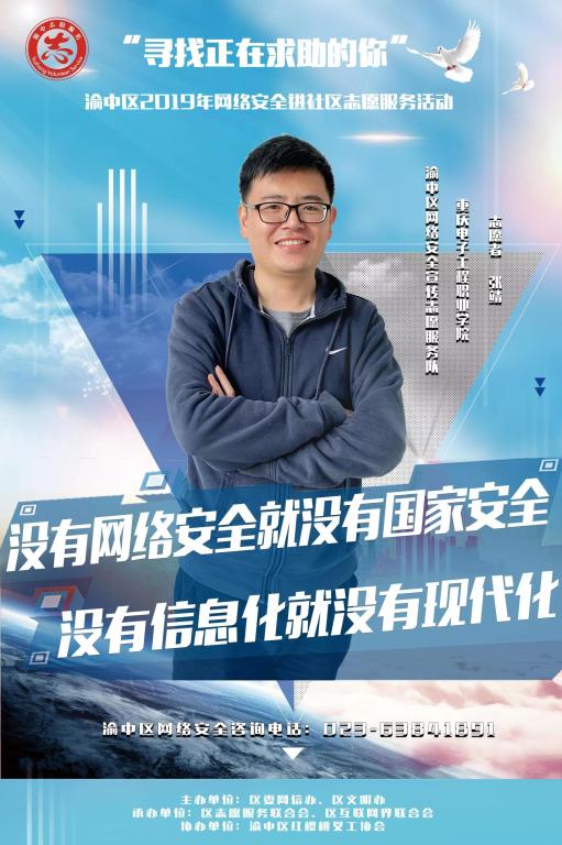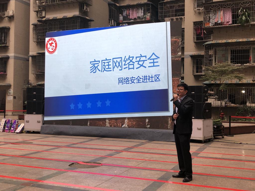 11月16日,渝中区2019年网络安全进社区志愿服务集中示范活动在朝天门街道棉花街都市庭园举行,pg国际人工智能与大数据学院云计算应用技术专业张靖老师应邀参加并担任主讲嘉宾。