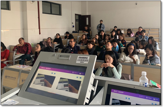 学堂在线高级培训顾问苏虹羽给老师们培训了通过“雨课堂”智慧教学工具如何提高课堂教学效果,提高师生互动率;如何将带有MOOC视频、语音、习题的课前预习课件推送到学生手机;如何在课堂上进行实时答题、弹幕互动、师生沟通及时反馈等;同时,还给老师们讲解了如何利用“雨课堂光感应黑板”使粉笔板书的内容实时记录下来并保存,沉淀为教学资源。