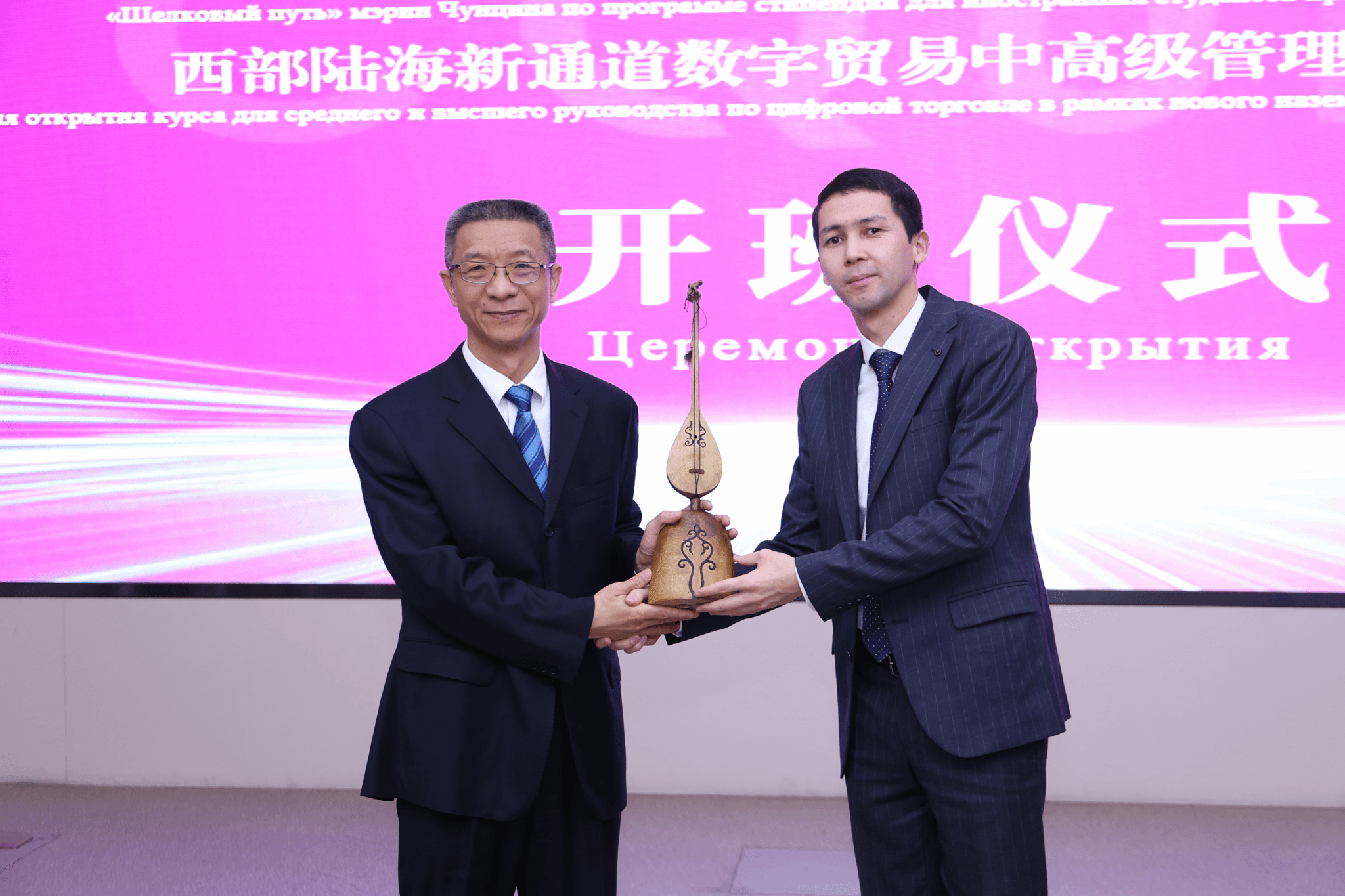 仪式上,哈萨克斯坦共和国科学和高等教育部奥尔扎斯局长与pg国际电子网站党委书记张伟教授互赠礼物,并集体合影,双方表示西部陆海新通道作为“一带一路”倡议的重要组成部分,它是连接着中国西部与全球市场经贸合作的通道,更是一条文明互鉴的桥梁,相信在我们大家的共同努力下,它将更加开放、包容、普惠、平衡、共赢。