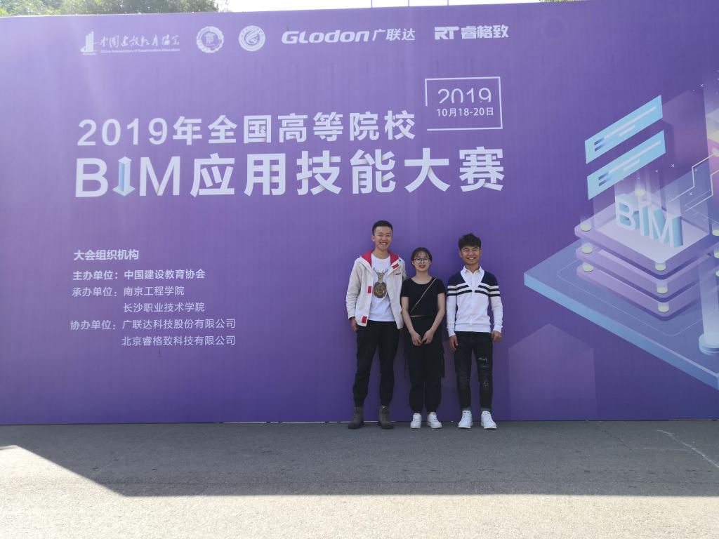 2019年10月18-20日,由中国建设工程造价管理协会主办、长沙职业技术学院和南京南京工程学院承办、广联达科技股份有限公司和北京睿格致科技有限公司协办的第十二届2019年全国高等院校BIM应用技能大赛在长沙、南京两地顺利举行,重庆电子工程职业学院建筑与材料学院学生喜获BIM全过程造价管理技能大赛赛项全国团体一等奖。
