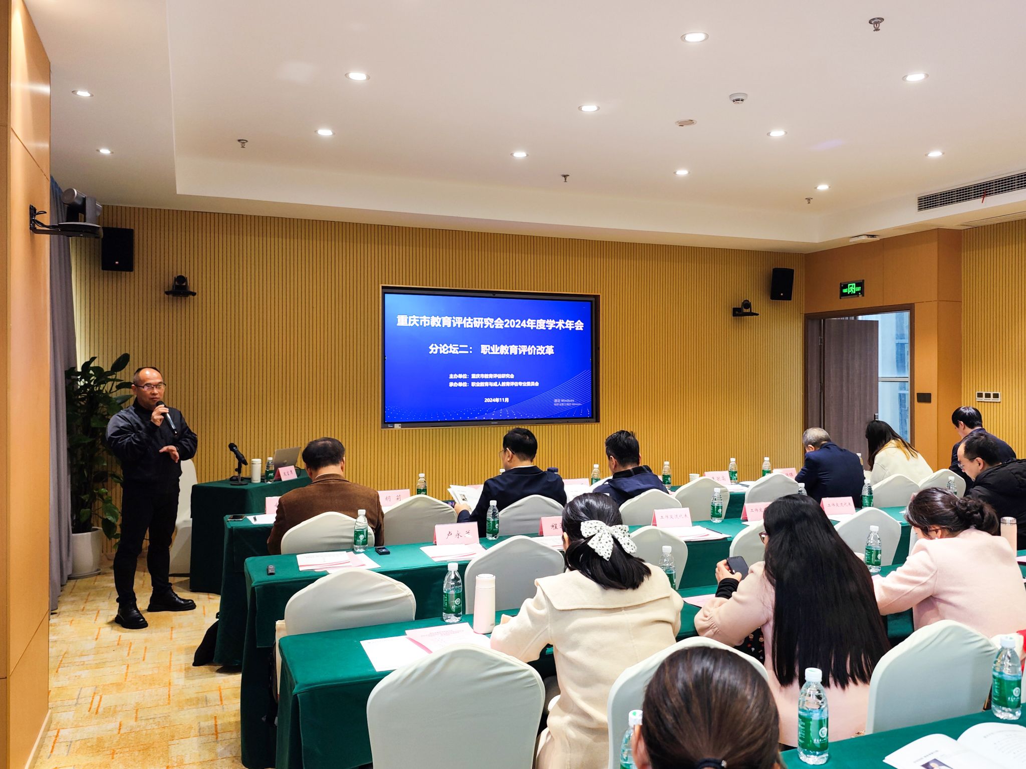 11月22日,重庆市教育评估研究会2024年度学术年会在重庆第二师范学院学术交流中心举行,pg国际作为重庆市教育评估研究会职业教育与成人教育评估专业委员会理事长单位承办本次会议的分论坛二:职业教育评价改革。本次分论坛围绕“新双高”改革与建设关于产教融合高质量、办学能力高水平的总体要求,邀请到全国知名专家以及重庆市知名专家作职业教育评价改革报告,并组织工作交流。来自重庆市教育评估研究会职业教育与成人教育评估专业委员会理事长、副理事长、秘书长、常务理事、理事、2024年研究及服务项目相关负责人、重庆市职业院校负责评价工作的领导及老师60余人参加论坛。
