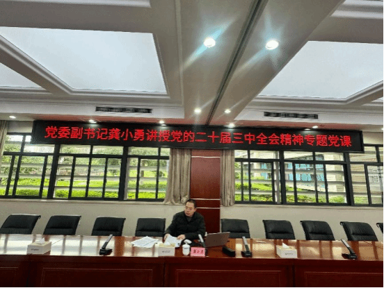 为进一步贯彻好党的二十届三中全会精神,11月26日下午,学校党委副书记龚小勇同志在博润厅,为党委组织部、教务处、双高办公室、人工智能与大数据学院、马克思主义学院以及人工智能与大数据学院师生党员代表,讲授党的二十届三中全会精神专题党课。