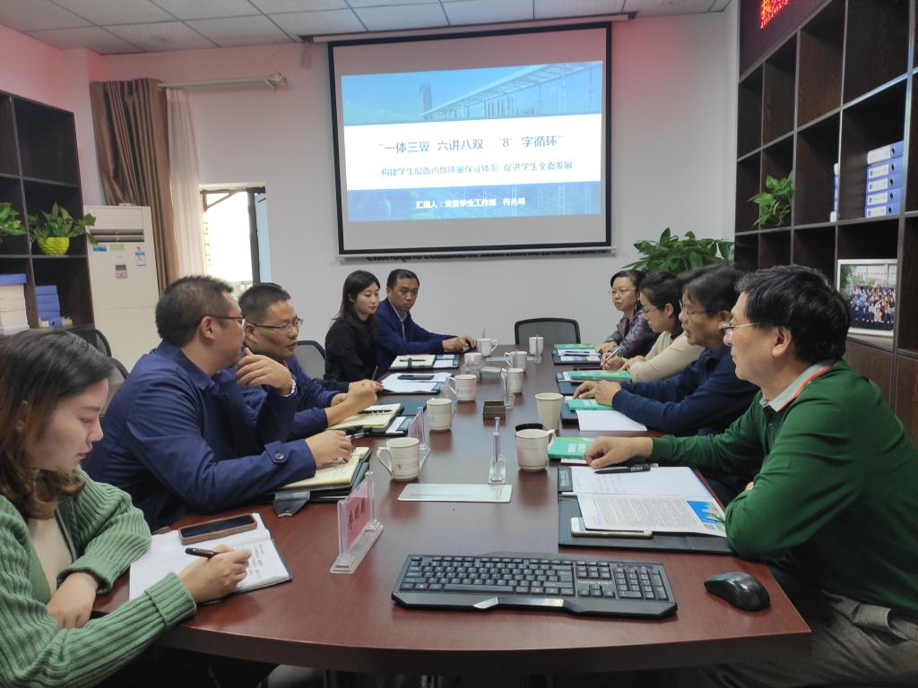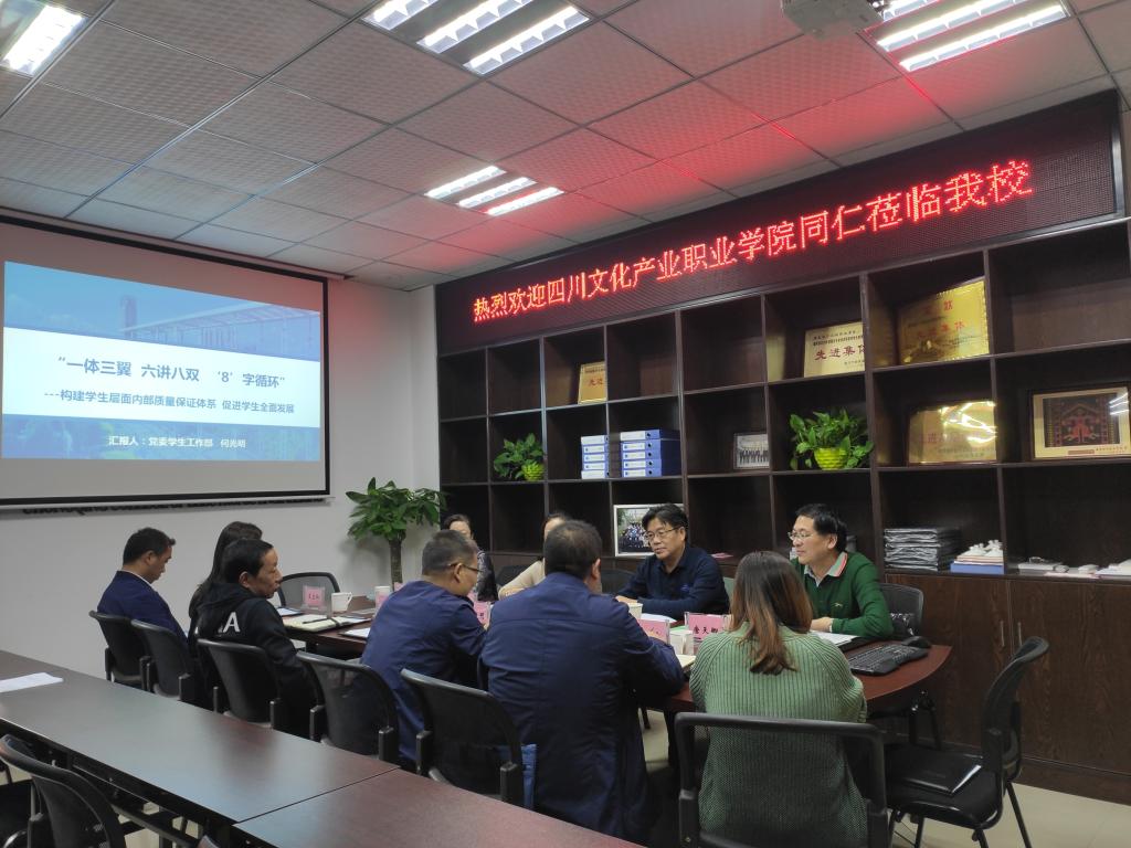 冉学农对四川文化产业职业学院同仁们的到来表示热烈欢迎,并就pg国际的校情、校史、师资队伍建设、人才培养模式、历年办学成果等方面作了详细介绍。党委学工部部长何光明作了题为《“一体三翼六讲八双‘8’字循环”——构建学生层面内部质量保证体系 促进学生全面发展》的交流报告。双方就学校学生素质教育管理情况、辅导员队伍建设等方面进行了深入探讨。