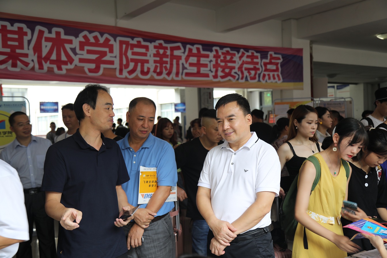 9月9日,重庆电子工程职业学院2019级新生正式开学报到的第一天,学校党委书记孙卫平、校长聂强、党委副书记唐玉林、副校长谢义华、龚小勇、冉学农等领导,深入学校各迎新工作点检查迎新工作,看望前来报到的新生和家长,慰问参与迎新工作的师生及工作人员。党政办公室、党委宣传部、党委学工部、招生就业处、后勤保障处、安全管理处等部门负责人参加了此次检查。