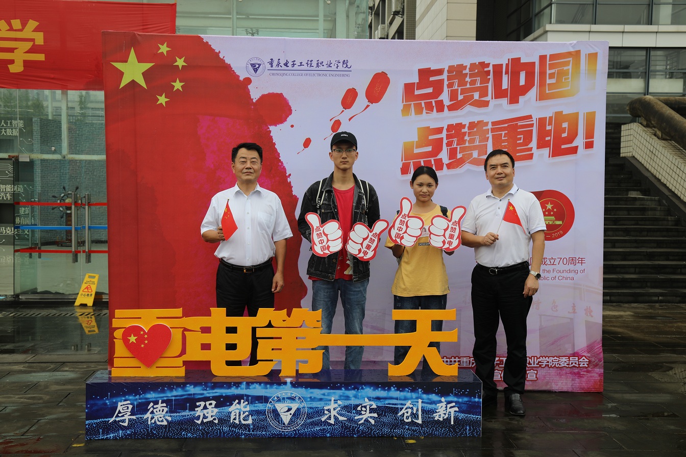 在经过校史馆时,孙卫平书记和聂强校长与还到西校门参与了党委宣传部举办的庆祝中华人民共和国成立70周年,“重电第一天——点赞中国,点赞重电”拍摄活动,与新生及家长共同记录下难忘的时刻。孙卫平书记关切询问他们报道是否顺利。聂强校长勉励新生努力学习专业知识。