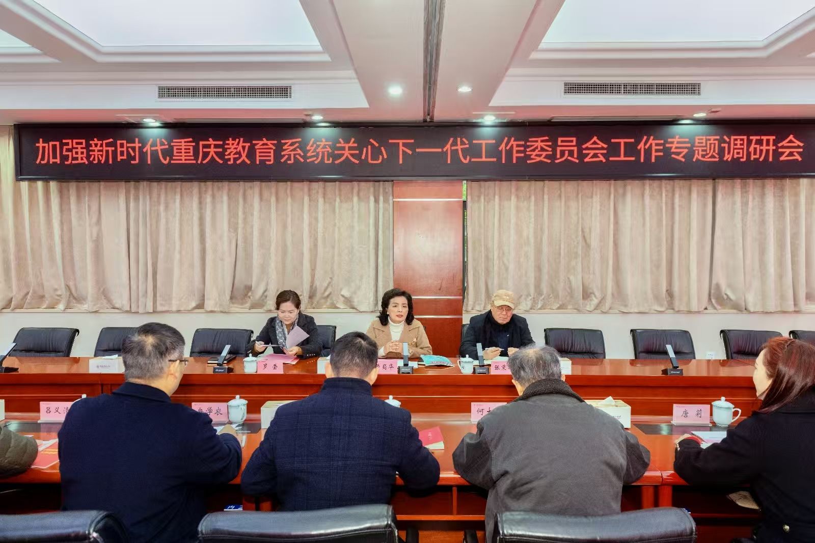 12月6日,重庆市教委关工委常务副主任董蜀华一行来校就加强新时代重庆教育系统关心下一代工作委员会工作开展专题调研座谈。会议由市教委关工委常务副主任董蜀华主持,市教委关工委秘书长张秉华、副秘书长罗莹出席。